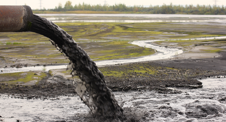 metais pesados e produtos químicos de processo, contaminando o sedimento e a água ao redor das